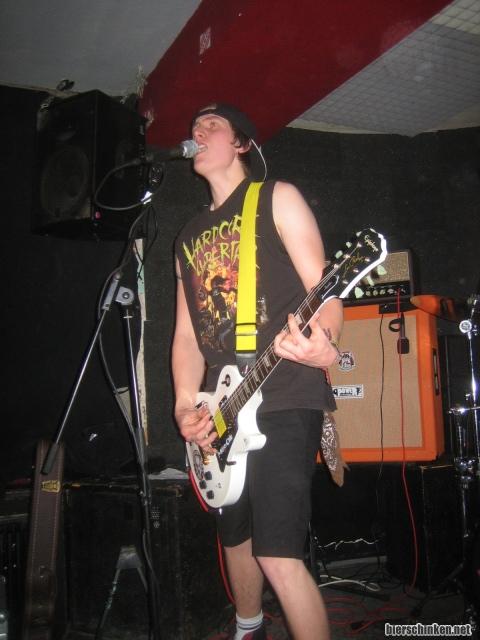 Geiler Scheiß, wirklich geiler Scheiß. Mütze verkehrtherum, der Bassist trägt ein T-Shirt überm Longsleeve. Die 90er leben! Der Drummer hat ein Vandals-Shirt an und haut mächtig fix auf seine Schießbude. So solls sein.