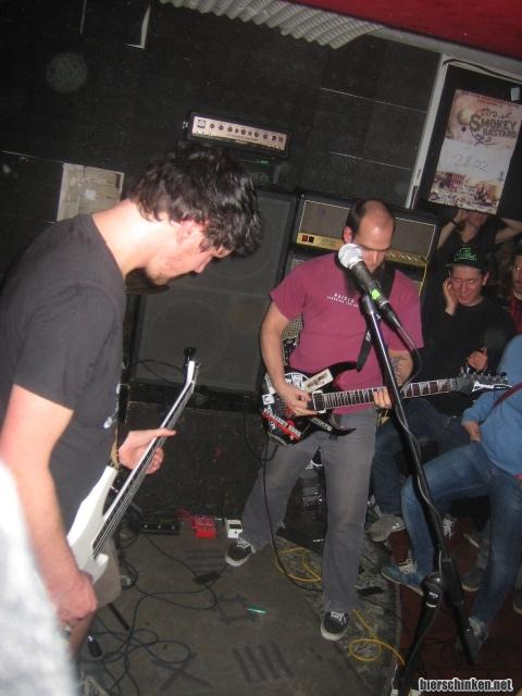 Er hier in dem weinroten Shirt durfte für irgendein Lied an die Gitarre. Gerüchten zufolge war er mal bei Affenmesserkampf, ist dann aber ausgestiegen, weil es ihm zu albern wurde.