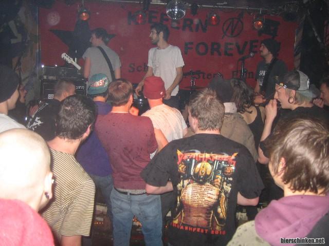 Im Pit wurde auch recht viel mit Bier rumgesaut, irgendwann kommt einer aus den hinteren Reihen, schüttelt seine Cola, ruft "Straight Edge for life" und spritzt alles voll. Gleiches Recht für alle!
