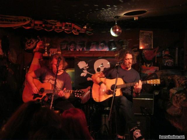 Die nächste Band ist sonst auch mehr Band und heute nur Duo: GELIEBTER FEIND. Alleine für diesen Klischee-Deutschrock-Namen sind die bei mir schon untendurch. Die Musik ist dann zum Glück nicht ganz so schlimm. Eher klassischer, Blues-orientierter Deutschrock der 70er/80er, sag ich mal so (als Laie). Zwei Typen. Ein Gunter-Gabriel-Lookalike und ein, äh, keine Ahnung. Geht schon allein optisch als Mucker-Original durch. Mischung aus Zorro und Chad Kroeger.