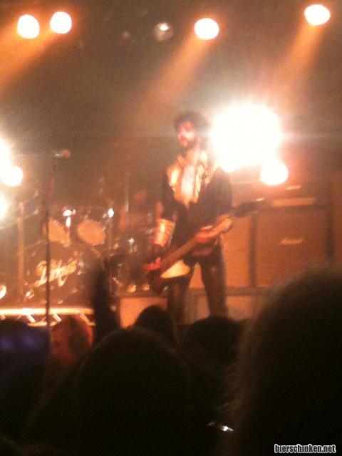 Bassist Frankie Poullain hat heute nicht nur das zweitbeste Outfit an, sondern auch seine Mutter im Publikum. Folglich liefert er eine einwandfreie Show ab und feuert immer wieder das Publikum zum Mitklatschen an. Allerdings nicht in dieser nervtötenden Volksmusik-Manier, bei der einer schreit "und jetzt alle", sondern eher durch das Aufnehmen von direktem durchdringendem Blickkontakt, sodass man Angst bekommt, wenn man nicht mit macht. Geschrieben ist das nicht so verständlich...