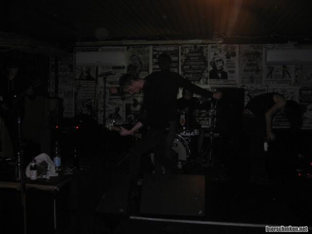 Aber, uiuiui, so mies ist das gar nicht. Dunkles Bühnenbild, Zwischeneinspielungen vom Band und wahlweise mit dem Rücken oder zumindest mit der Seite zum Publikum stehend, das lässt schon auf Konzeptband schließen. Musik: Sehr düstere Hardcore-Variante, ich sach ma à la Ruins oder so, mit exzessiven Postrock-Ausflügen. Dazu (mehrstimmiger) Schreigesang der Marke Black-Death-Crust-Irgendwas.