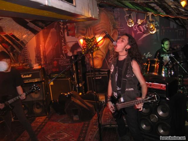 Ist einer der letzten Auftritte der Tour der beiden Bands (Deutschland wurde auch bereits bereist) und wie das so ist am Ende einer Tour: Der Sänger muss sich irgendwann entschuldigen, dass der Auftritt nur so kurz dauert, weil die Herren Musikanten mittlerweile ein paar Krankheiten mit sich rum schleppen. Also, Schnupfen und so. Vermute ich mal. Aber dafür konnte der Gute echt noch ganz geil ins Mikro röhren!