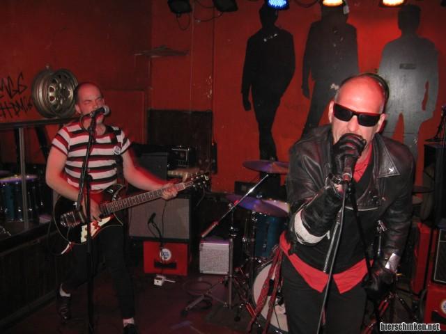Ohne viel Rumgeplänkere weil dieser Bericht eh verspätet kommt, direkt weiter mit der ersten Band: LA FLINGUE aus Froonkrooisch! C'est le punkrock avec des gents de Irritones et Hatepinks. Um mal mein Schulfranzösisch rauszukramen, das immerhin deutlich schlechter als das Schuldeutsch des Sängers ist. Der wiederum hat seine Schulzeit anscheinend in der richtigen Ecke des Pausenhofes verbracht und kommuniziert hauptsächlich in Beleidigungen.