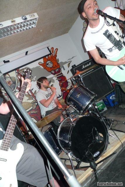 Musikalisch gibt es schnellen Rotzpunk mit Liedern an der Minutengrenze auf die Ohren, die Songs hören dabei auf Namen wie "Trash Heil", "Halt dei Maul" und "Fickt euch alle" - wobei ich explizit letztgenannten Song leider vermisse. Ist das jetzt Trashcore oder nicht (ihr Vollidioten)? Achja, hier Drummerfoto.