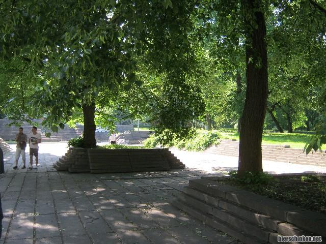 Vilnius ist übrigens ziemlich grün, überall kleinere bis größere Parkanlagen. Hier mal was mit vielen Treppen, scheint auch ab und zu Skater und Punks anzuziehen, zumindest sitzen weiter hinten welche.
