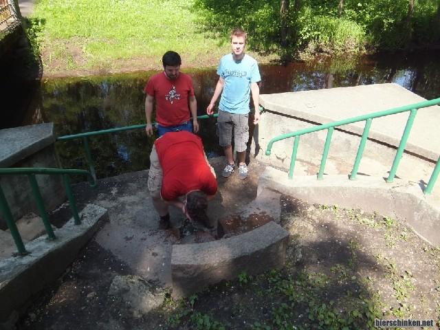 Unter anderem schickte er uns auch zu einer Quelle im Sanatoriums-Park. Angeblich soll man sich um 10 Jahre verjüngen, wenn man sich mit dem Wasser das Gesicht wäscht. Wir wagen den Versuch, obwohl das Wasser abgrundtief nach faulen Eiern stinkt. Aber Schwefel ist ja gesund. Und irgendwie müssen wir der Wirkung des Weines zuvorkommen, der uns bestimmt um 10 Jahre ältern lassen wird...