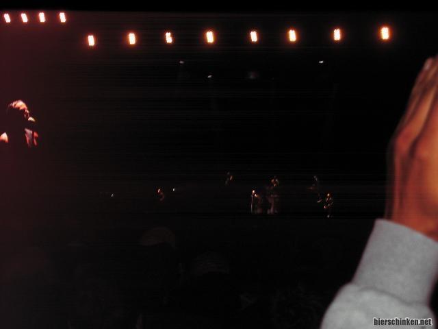 Wir schauen so 5-6 Lieder an. Was ich von der Show mitbekomme ist schon gigantisch: Überall Feuer, Keyboarder Flake wird bei "Mein Teil" gekocht, geschlagen und läuft während er spielt auf einem Laufband. Aber wir gehen dann. Wir bekommen zu wenig mit - wer Rammstein mal auf so einer Veranstaltung sehen will, dem habe ich einen Tipp: 2-3 Bands vorher in den vorderen Wellenbrecher gehen, dann klappts. Haben ein paar unserer Reisegruppe gemacht - die hatten zwar enorme Angst zerquetscht zu werden, sind aber dennoch heil da raus gekommen.