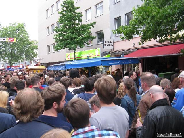 Anschließend: Schnell flüchten. Wobei "schnell" so relativ ist bei den Menschenmassen hier. Laut Veranstalter waren gestern 120.000 Menschen hier, heute sind es 150.000 - aber ich weiß nicht, ob diese Zahl vielleicht pro Quadratmeter gemeint ist. Zu unserem Unglück müssen wir auch noch quer durchs Bermudadreieck. Weit weg von der Bühne, wo "Monsters of Liedermaching" gleich spielen und hin zur Bühne, wo wir soeben "Baby Lou" verpassen.