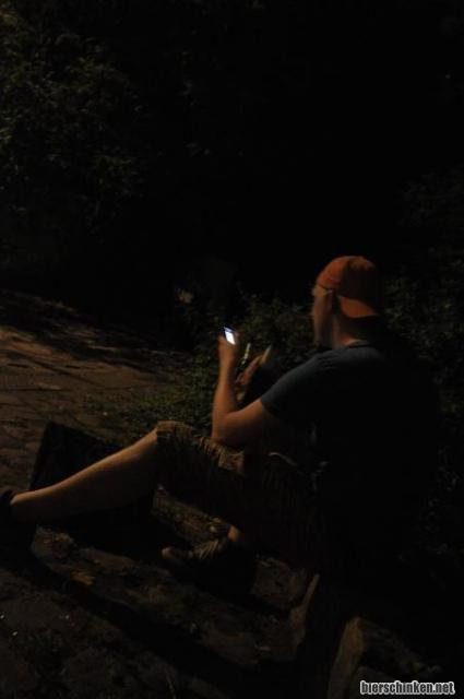 Bandpause, schnell raus und ein paar Fotos aufm Handy angucken.