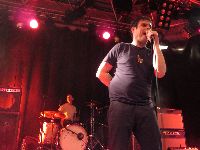 Die Band ist sichtlich erfreut über den regen Zuspruch (erwähnte ich eigentlich schon, dass der ziemlich rege ist?), ist ja auch keine Selbstverständlichkeit, dass ein Opener direkt den Geschmacksnerv des Publikums trifft. Aber ist ja auch keine Selbstverständlichkeit, dass ein Opener hochwertige Musik bietet. Vorm Konzert durfte ich belauschen, wie einer der Veranstalter so ne Krönungs-Floskel à la "wir unterscheiden nicht nach Vorgruppen und Headliner" (genauer Wortlaut versank im Nebel) von sich gab, aber, naja, trotz Floskel: Immerhin wurde bei der Wahl der Vorgruppe augenscheinlich wohlüberlegt vorgegangen. Macht ja auch nicht jeder. Es soll Veranstalter in Düsseldorf geben, die sowas wie Findus und Betrunken im Klappstuhl zusammen buchen.