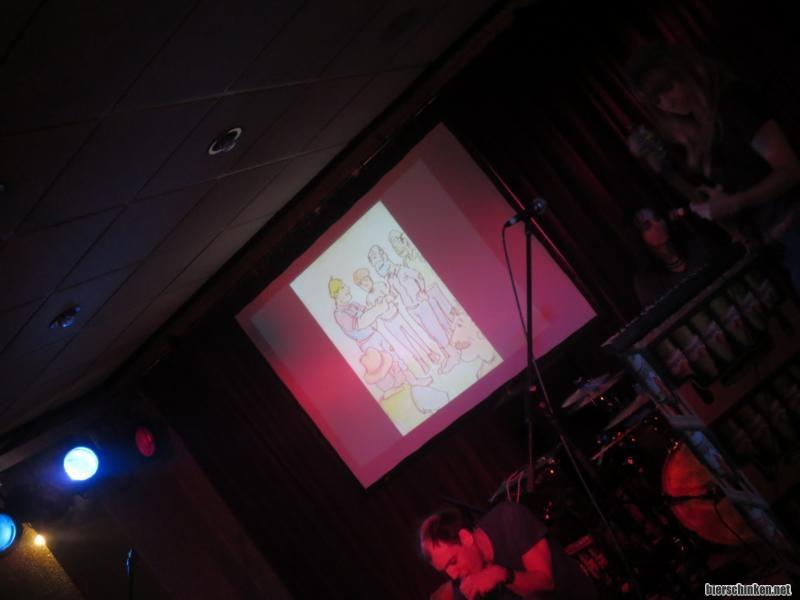 Neben mal ruhigen, mal krachigen Folksongs zeigt die Band ausserdem ein paar Comics auf der Leinwand, welche von Jeff besungen werden, untermalt mit Bass und Schlagzeug.