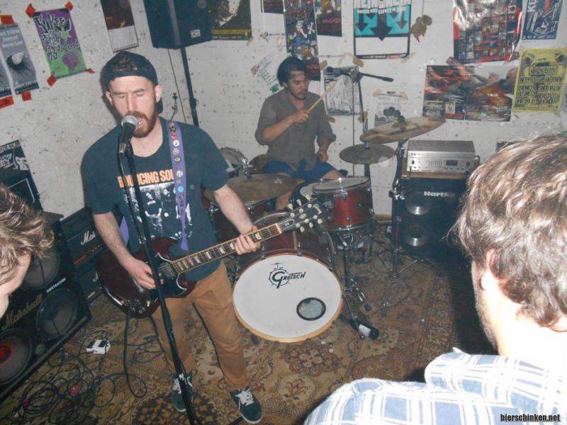 Yo, die kommen aus Tel Aviv und machen auch Punk, aber irgendwie weniger trashig. Der Schlagzeuger hat sich während des gesamten Maladro!ts-Auftritts mit Stöckern in der Hand warm gemacht und fordert ein volles Haus. Kriegt er: alle, die noch da sind, feiern. Sieht mit Blitz aber scheiße aus.