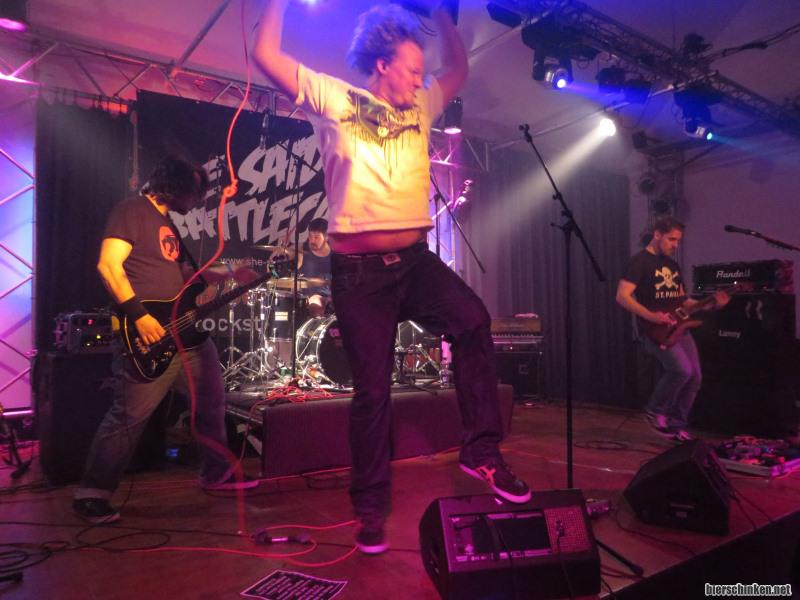 Also gibt's viel Action. Kommt schonmal gut. Die Ansagen wirken auch nicht aufgesetzt sondern stützen tatsächlich das Konzert, anstatt die unangenehme Stille hervor zu rufen - die kommt erst, als Daniel nen Witz erzählt. Ging ungefähr so: "Wie nennt man das, wenn es bei nem Konzert kein Catering gibt? - Phantomspeisung". Ich glaube, außer Künne hat keiner gelacht.