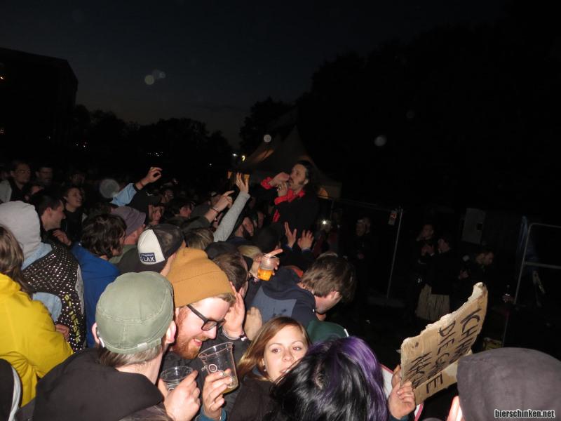 Fö: Zwischendurch klatscht auch mal ein Schlammklumpen auf die Bühne. Galant hebt Christian Steiffen ihn auf, tupft sich damit die Stirn und bedankt sich für die Erfrischung. Christian Steiffen zeigt mal wieder, dass er einfach jeder Situation gewachsen ist. Ich bin verliebt!