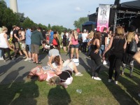Derweil auf der großen Bühne: MILKY CHANCE. Wollte ich eigentlich mal gesehen haben, einfach so um mitreden zu können, man darf ja keinen Hype verpassen. Was ich mitkriege, ist Indie-Rock, der verblüffenderweise an Sublime erinnert. Aber hier sind einfach zu viele Menschen! Beim Versuch, ein einigermaßen ruhiges Plätzchen zu erwischen, landen wir irgendwann irgendwo im Schatten, wo man vom Auftritt dann eh nix mehr mitkriegt. Dementsprechend kann ich mir keinen abschließenden Eindruck von Milky Chance erlauben.