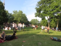 Die Fülle vor der Bühne: Genau richtig! Sind zwar viele Leute da, aber so gut verteilt dass man überall gut stehen, tanzen oder was auch immer kann. Außerdem wird's langsam dunkel und die Sonne nervt nicht mehr ganz so. Auch cool.
