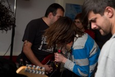 Dann spielen DEER IN THE HEADLIGHTS. Geschrei und Geknüppel. Kommen aus Bosnien. Sind erst kurz vorm Auftritt da. Brauchen ne Ersatzgitarre. Sind ganz gut.