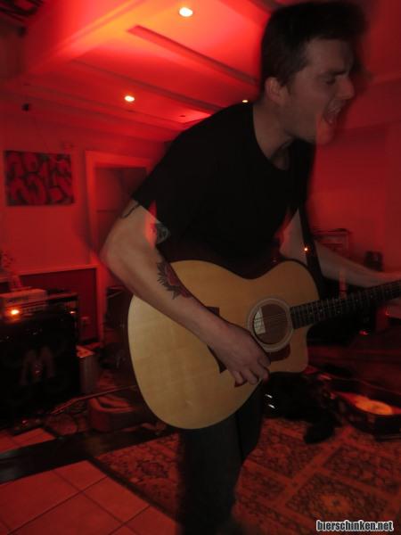 Paar alte Songs, paar neue Songs, EP kommt bald, tritratrulala, und wenn man ganz vorne steht (ganz Indie-Emo-Herzchen-mäßig mit gesenktem und wippendem Kopf und den Händen in den Taschen), versteht man sogar was von den Ansagen, die aber eher spärlich sind. Hauptsächlich sagt er "danke". Weil er so ein guter Mensch ist.