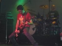 Gut, sie kommen auf die Bühne. Der Schlagzeuger imitiert gekonnt einen Betrunken und tut so, als ob er nicht mehr spielen könnte. Und so ist es auch. Ganz durchgezogen wird gar kein Lied. Die erste Eigenkomposition wird glaub ich erst nach 15 Minuten oder so angespielt. Vorher werden "Summer Of 69" und weitere Klassiker angespielt.