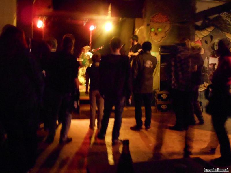 Auch KACKSCHLACHT ist Punk. Die kommen - Achtung, Witz! - grundsätzlich erst nach 19:45 am Auftrittsort an. Aus politischen Gründen.