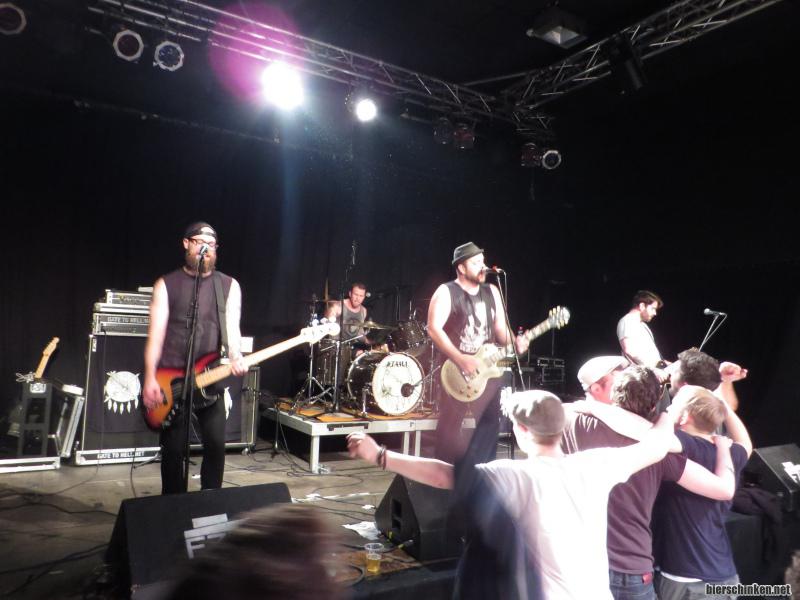 Fö: Das FZW ist gut gefüllt, aber ein wenig geht es mir doch auf den Zeiger, dass die Band so gut ist: Teile des Publikums sind doch irgendwie nervig und vermutlich aufm Ballermann besser aufgehoben. Diese Szenen, wenn mehrere Männer sich an den Schultern fassen und zu ner Art betrunkenen Ringelpietz-Sirtaki ansetzen, brrr. Passt hier nicht ins Bild.