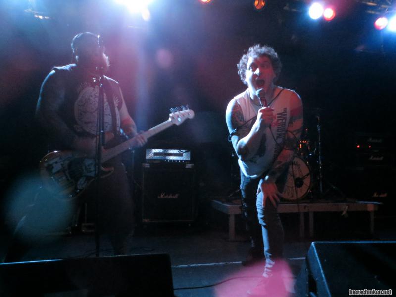 Schlossi: Ich muß zwischendurch immer wieder an Abfukk denken, die haben ja auch einen ziemlich extrovertierten Sänger, der sich gerne mal das Mikro vor den Schädel schlägt und auch musikalisch geht's in dieselbe (oder die gleiche?) Richtung: schnell, räudig, angepisst. Ach, da wird mir irgendwie ganz warm ums Herz, ein schöner Start in den Abend.