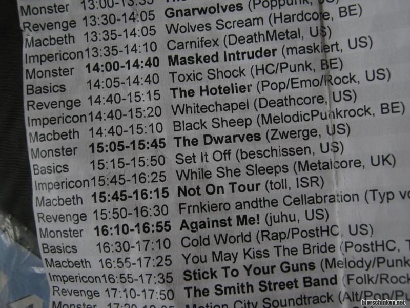 Fö: Letztes Jahr gab es noch 4 Bühnen, was einfach zu viel war. Diesmal gibt es 5 Bühnen - was immerhin dafür sorgt, dass sich die Besucher mehr verteilen. Andererseits muss man sich öfter der Entscheidung stellen, zu welcher Bühne man wandert...