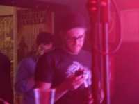 Moderator Rasmus Engler. Er hat bekanntlich Wurzeln in der Nähe von Köln und neigt daher dazu, Berliner als "intellektuell unterbemittelt" zu bezeichnen, wenn es darum geht, Quizfragen zu beantworten. Ein Typ gewinnt zwei Flaschen Bier, weil er die Frage "Kannst du ein bis drei Bassisten der Band Schrottgrenze zwischen 1911 und jetzt nennen" wahrheitsgemäß mit "Nein" beantwortet. Souverän.