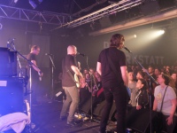 Das ist auch die erste und einzige Band heute Abend, die nicht so im Mitttempobereich vor sich hin schrammelt, sondern ordentlich Wumms hat. Und allzu ernst scheinen die Herren hier sich auch nicht zu nehmen.