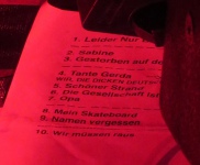An meinem Küchenschrank (am Regal mit den Suppentassen) hängt übrigens noch ne Schrottgrenze-Setlist von 2004. Ich glaub die kopier ich ein paar Mal und leg sie im September heimlich auf die Bühne. September, das ist der Monat, an dessen 17. Tag das jetzt schon legendäre "