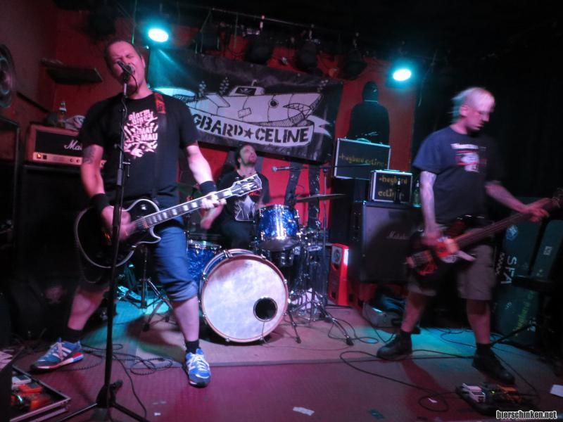 Wie auch immer. HAGBARD CELINE machen den Opener, die hab ich nun auch ne Weile nicht gesehen. Chris' engelsgleiches Röhren durchschallt den Raum, die Moves sitzen, aber ich glaube er hat kein einziges Mal "ihr Penner" gesagt, was etwas verwirrend ist.