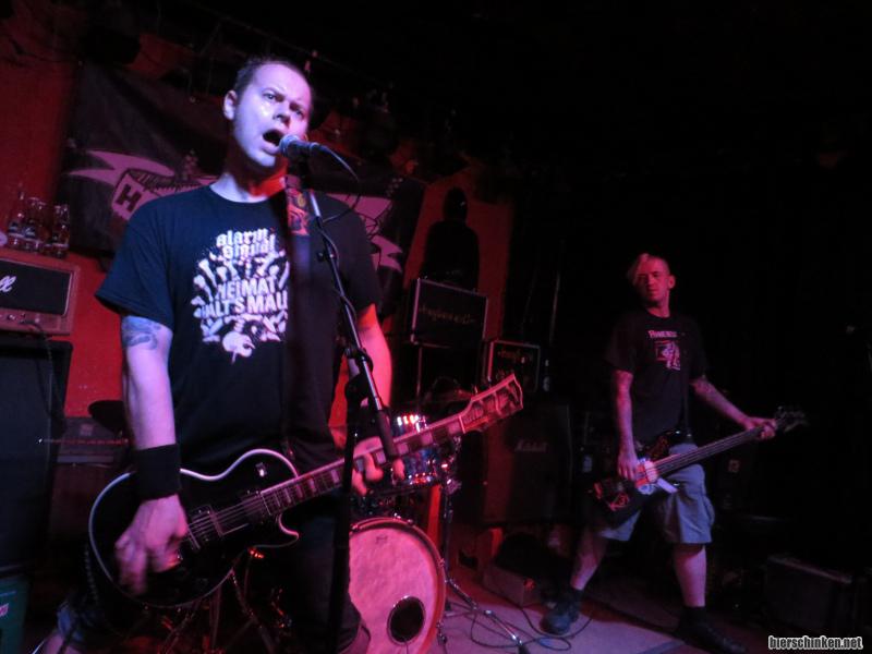 Drei anwesende Fans fordern am Ende fleißig "Wintermärchen", was dann sogar zufälligerweise gespielt wird. Die Band will gerade abbauen, da brüllen sie tatsächlich noch nach "Auf der Flucht", was dann auch noch gespielt wird, so als Zugabe, wie nett.