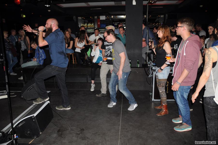 Fö: Es kommen übrigens konstant neue Leute in den Raum. Ich glaube, am Vollsten war es, als FITCHES ihren Auftritt starteten, wobei die Zuschauer es vorzogen, sich vor der Theke in Menschenwärme zu ergießen, während man sich vor der Bühne schon etwas exklusiver fühlte.