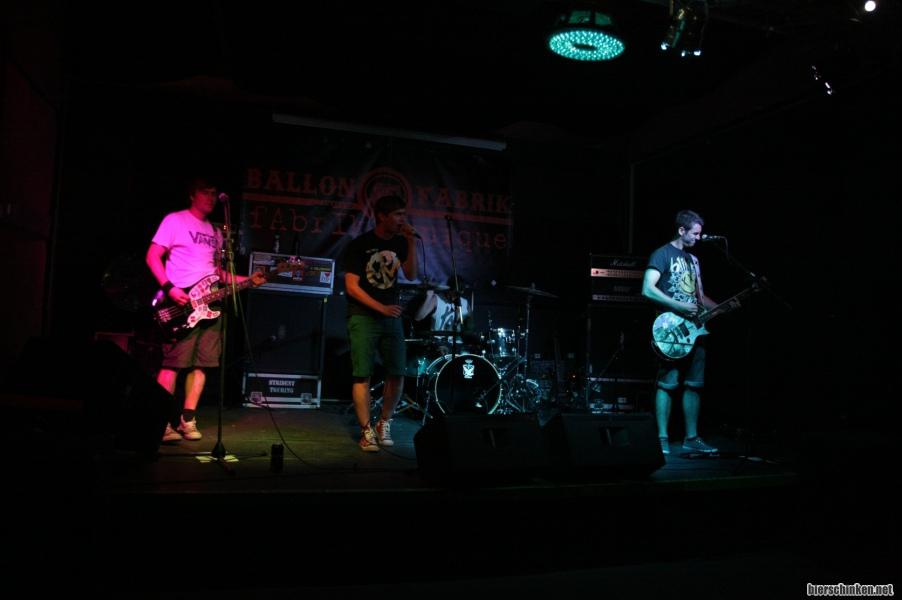 Gerdistan: Jau, erste Band ist der lokale Support aus den umliegenden Dörfern, die heute das erste Mal in der großen Stadt aufspielen: BROTEST aus Wertingen, Rain, Wortestetten oder sonstwoher. Angefangen als reine Coverband, fangen sie jetzt langsam an ihre eigenen Sachen zu spielen.