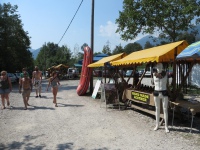 Das Gelände sieht an einigen Stellen eher aus wie eine Strandpromenade mit diversen Angeboten zur Freizeitplanung. Raften, Paragliden, etc. Alles da für den Abenteuertouristen von heute..