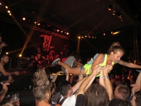 Ich bin vorbereitet und verbringe fast den ganzen Tag in Strandklamotten. Ist super hier an der Beach-Stage - da kann man zwischen den Bands mal eben kurz ins kühle Nass springen, dann weiter Bands gucken - könnt ich mich dran gewöhnen! Erwähnten wir schon, dass das Wetter durchgehend super war?