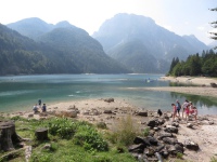 Unmöglich in diesem Schlick zu schwimmen! Der Chiemsee, zumindest die Stelle die wir uns zum Baden auserkoren haben, überzeugt uns nicht so wirklich. Ist halt schwer, mit der Soča zu konkurrieren.
