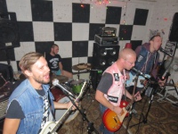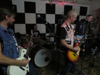 Beginn schon dicke vor 16 Uhr mit POGOPHON aus Leipzig! Punk und Suff und so. Sind gerade auf Wochenendtour mit Shutcombo - und da das Wochenende schon fast vorbei ist, kriecht die Band schon ziemlich aufm Zahnfleisch. Oder wie soll man die Sorgen des Drummers deuten, er müsse jeden Moment kotzen?