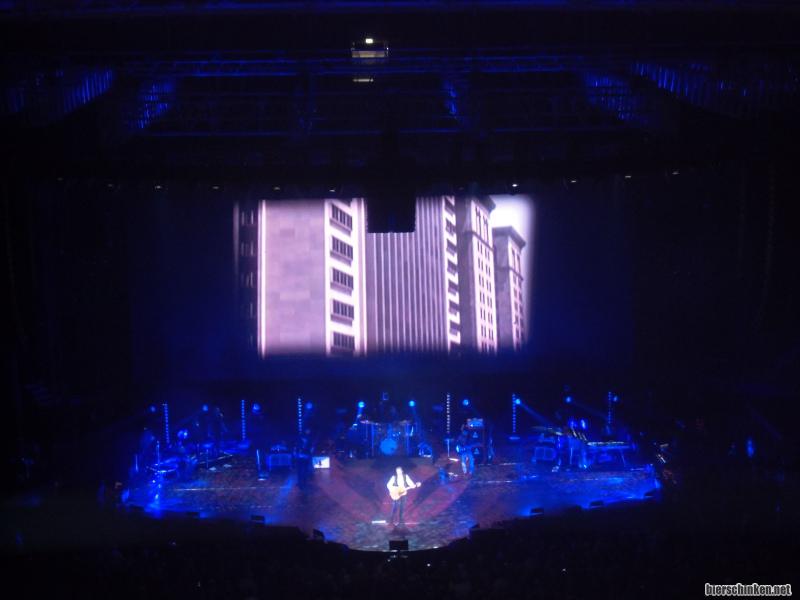 Aber auch, wenn es weniger politisch zugeht untermalt die Bildshow gut das Programm Westernhagens. Hier im Bild zum Beispiel bei "Wieder hier".