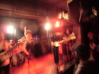 Gut, dass es da ja noch meinen Freund, also den Münsteraner Sauerländer gibt. Dieser kommt rein und zieht aus seinem Rucksack erstmal eine Tüte mit Brötchen, welche er aus Solidarität mit den armen Studenten erstmal fragend in die Luft reckt. Die Brötchen will jedoch irgendwie keiner, weshalb er die Tüte dann erstmal auf die Bühne legt. Vielleicht haben die Musiker ja gleich noch Hunger. Dann wird erstmal das mitgebrachte Bier ausgepackt. Prost! Als krönendes Highlight wird dann am Schluss aus der Tasche noch die eigene E-Gitarre rausgeholt und sich lauthals darüber beschwert, dass man keinen Strom hat. Richtig großes Kino!
