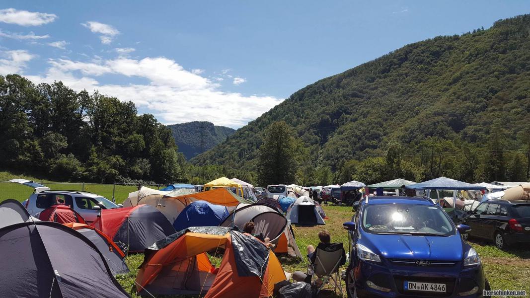 Peter: Irgendwann haben wir es dann auch geschafft. Am Eingang wird dann erstmal noch 30 Euro fürs Parken (ein bisschen happig), Müllpfand und Pfand für die Pay-Card gelatzt und die Pay-Card mit Geld aufgeladen. Schwupp und schon ist das Portemonnaie wieder um einiges leichter, hat auch schon richtig gedrückt am Hintern. Danach wird erstmal das Camp um ein Zelt erweitert, der Pavillion aufgebaut und das Auto ausgeladen. Festival kann beginnen!