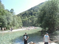 Gegen Mittag dann das erste Zusammentreffen mit Zwen. Gemeinsam entschließen wir uns, erstmal ein ausgiebiges Bad in der Socá zu nehmen. Heute herrscht nämlich bestes Badewetter! Noch schnell am Bierstand auf dem Campingplatz mit lecker Budweiser eindecken und ab gehts!