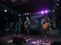 Zum Schluss gibt es dann noch ein Featuring mit der Gitarristin von Black Vulpine. Nicht schlecht, mal eben mit drei Gitarren auf der Bühne stehen. Ist ja fast ein bisschen wie bei Iron Maiden. Nur ein wenig kleiner und ohne Flugzeug.