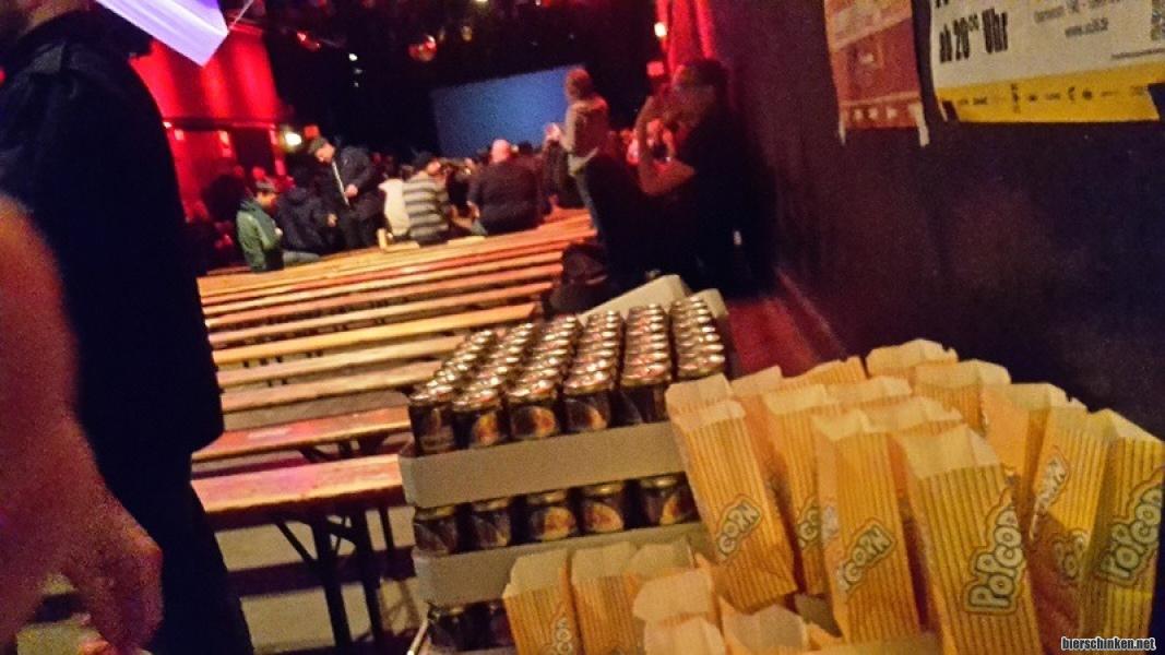 Gästelistenplatz gegen fünf Euro fürn guten Zweck. Gute Jungs! Und dann gegen Spende Dosenbier und Popcorn.