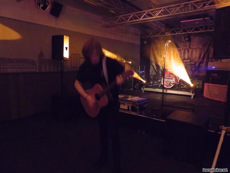 Dann verlassen auch sie die Bühne und der Gitarrist erscheint für eine Solo-Akustik-Nummer vor der Bühne. Witzigerweise klingt der Gesang unverstärkt einige Nummern stärker.