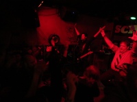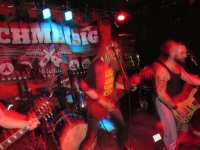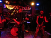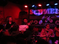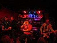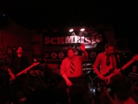 Aufgrund erwähntem Zugplanchaos spielen SCHMEISIG bereits, als ich Fuß in die Lokalität setze. Wegen des ausufernden Programms ist heute nämlich ganz Ballroom-untypisch ein früher Start terminiert. Soll ja schließlich jeder vor Mitternacht sein Geburtstagsständchen loswerden!