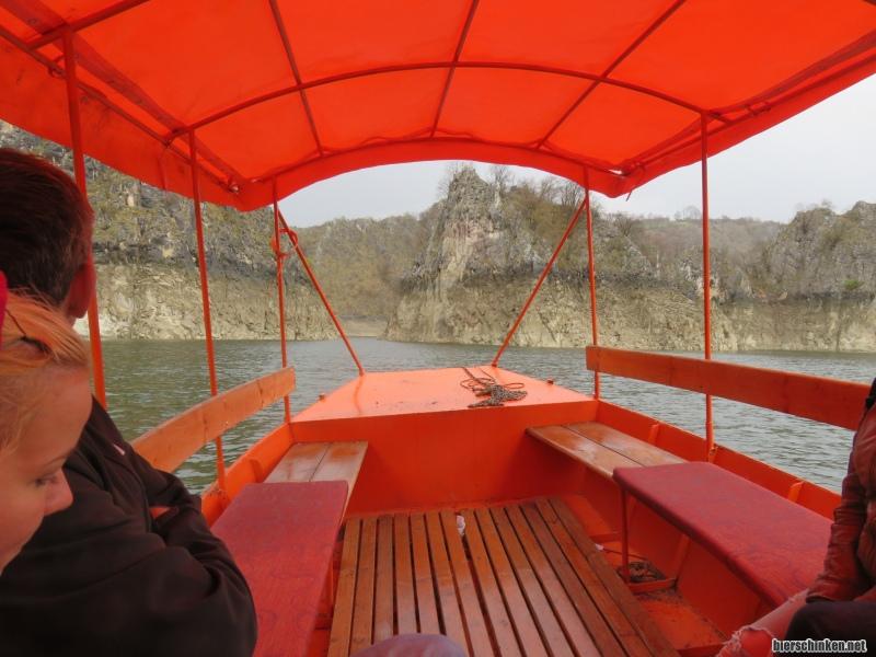 Kaum wieder auf dem Boot, fängt es an zu regnen und zu winden. Ein Glück gibt es eine Plane, die uns den Regen etwas vom Leib hält - zumindest den Regen, der von oben kommt.