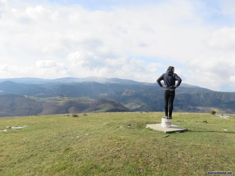 Schöne Aussicht von diesem grünen Hügel! Man sieht nicht nur die Berge der Zlatar-Region, auch die schneebedeckten Berge des Durmitor-Massivs in Montenegro lassen sich in der Ferne ausmachen.