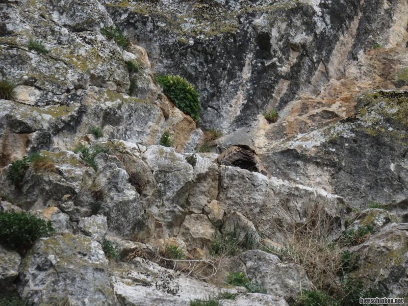 Fö: Bekannt ist die Gegend für die vielen Gänsegeier, die eine Flügelspannweite von bis zu 3 Metern aufweisen - wir entdecken aber lediglich ein paar in den Felsen hockende, die ihr Gefieder nicht voll präsentieren wollen.